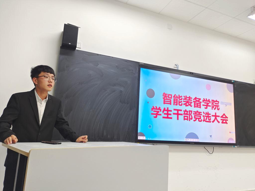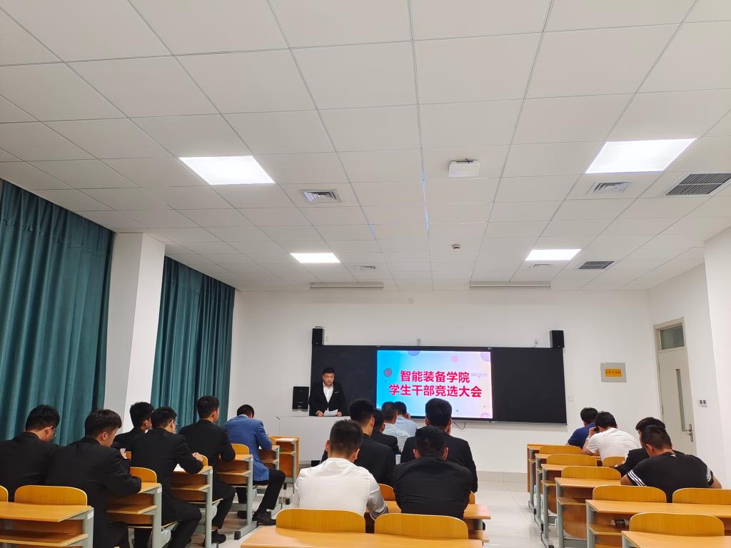 怀揣理想与希望,承载责任与荣光。智能装备学院新一届学生干部换届竞聘大会于10月3日在习思楼302室顺利召开。智能装备学院院长安丰金老师、副院长陈宏波老师、团总支书记张晓通老师及多名辅导员老师出席会议,2020级竞争主席团的学生参加此次竞聘会。