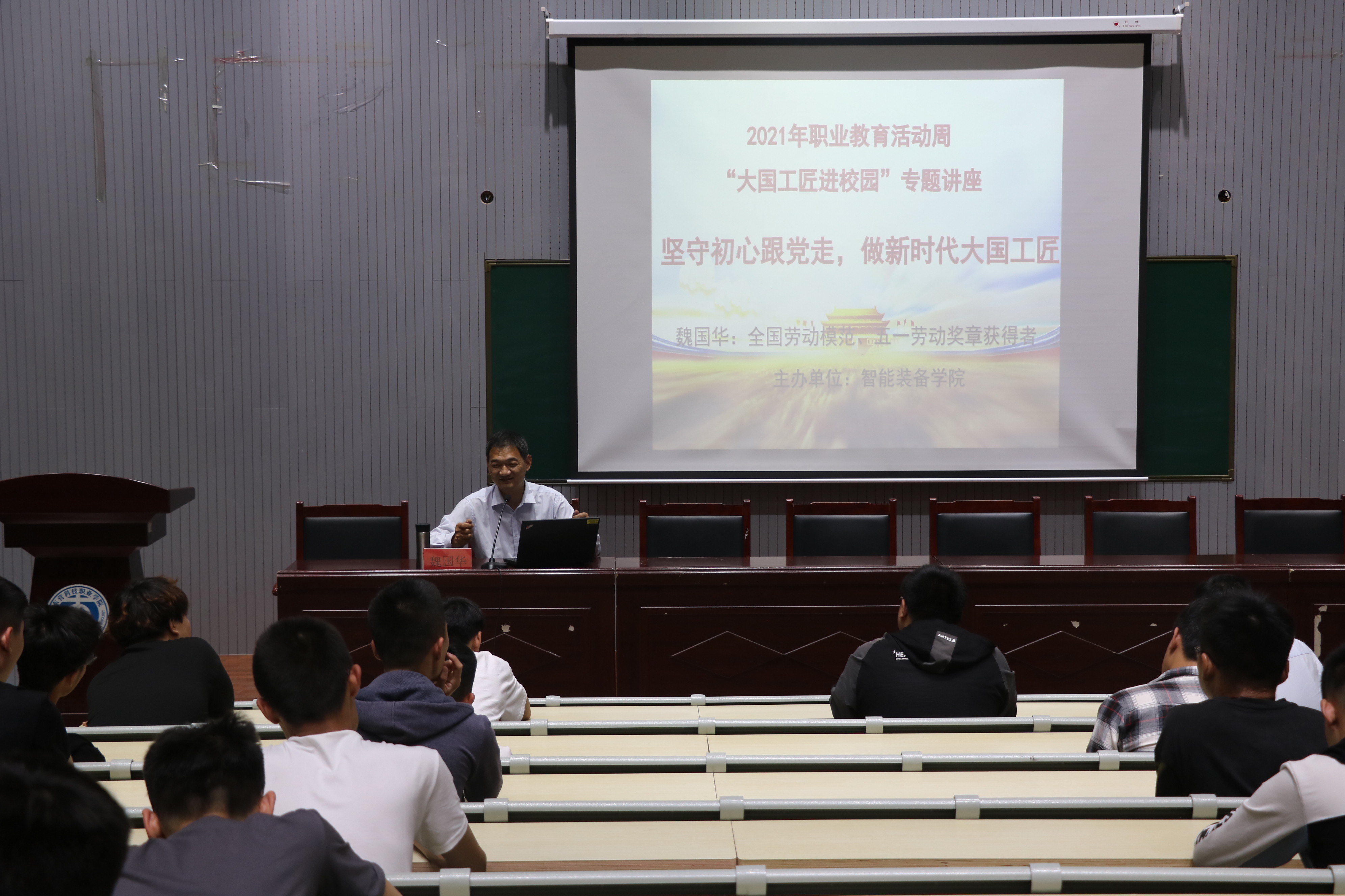 6月1日,beat365唯一官方网站邀请“全国劳模,五一劳动奖章获得者”魏国华给师生作“坚守初心跟党走、做新时代大国工匠”的主题报告会。