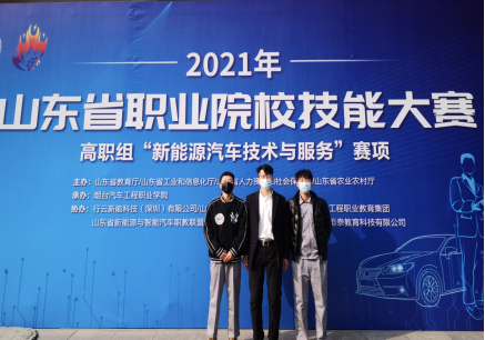 12月11日,beat365唯一官方网站教师田振龙、杨素芳指导的参赛学生宫诚、赵冬晨在2021年山东省职业院校技能大赛高职组“新能源汽车技术与服务”赛项中荣获三等奖。